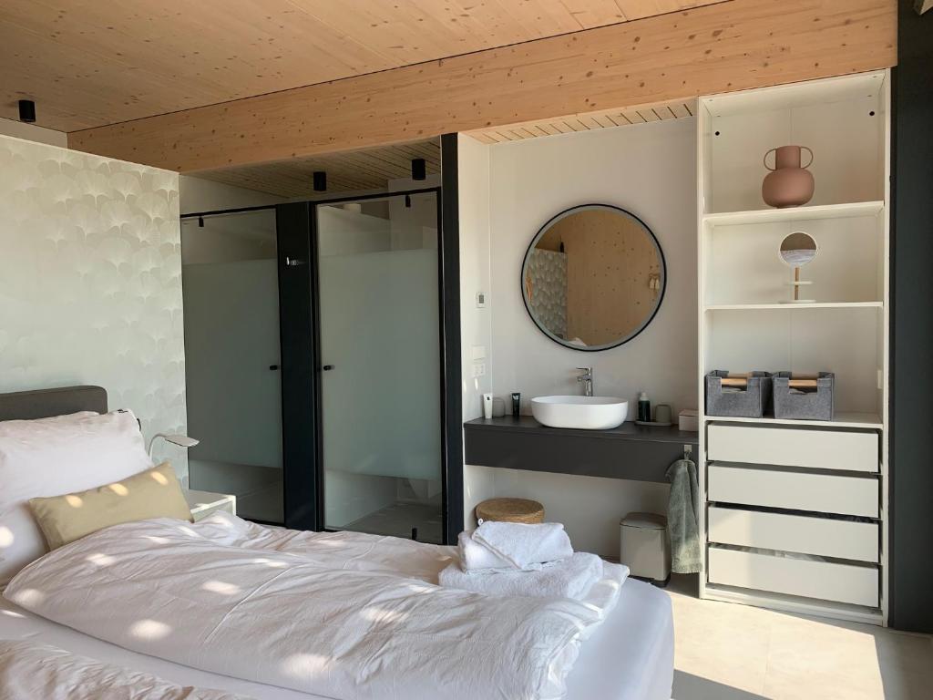Deze ruime kamer bevindt zich op de begane grond van onze moderne B&B en is geschikt voor maximaal vier personen. De kamer beschikt over een kingsize bed (210 cm) én een comfortabele slaapbank (160 cm), perfect voor een gezin met kinderen of een groep vrienden.