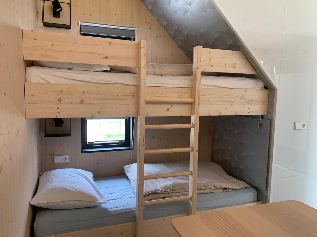 De vierpersoonskamer beschikt over een eigen ingang, geluiddichte muren, een terras met uitzicht op de tuin en een eigen badkamer met een inloopdouche. De unit heeft een 2pers. bed en een stapelbed.